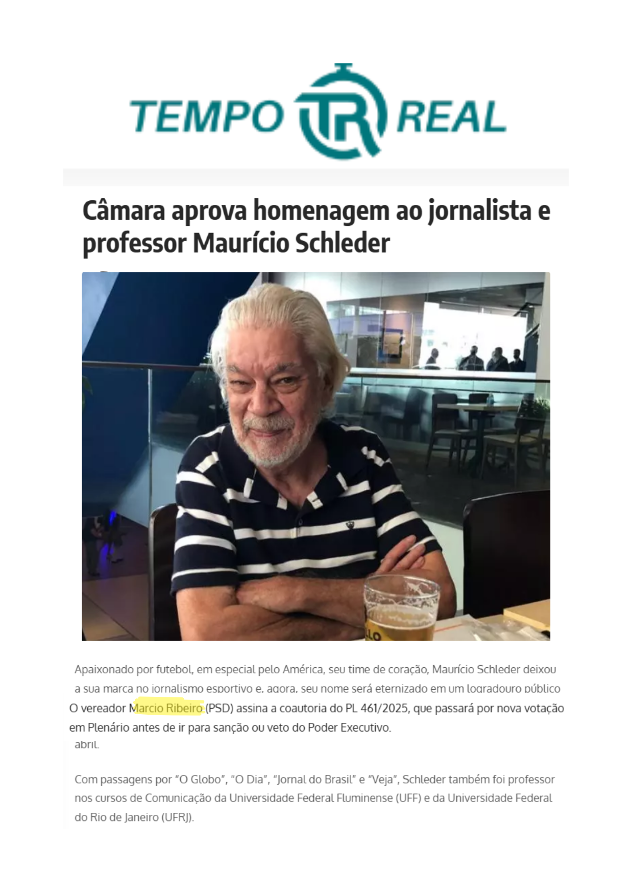 Câmara aprova homenagem ao jornalista e professor Maurício Schleder