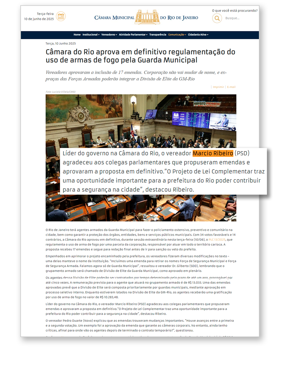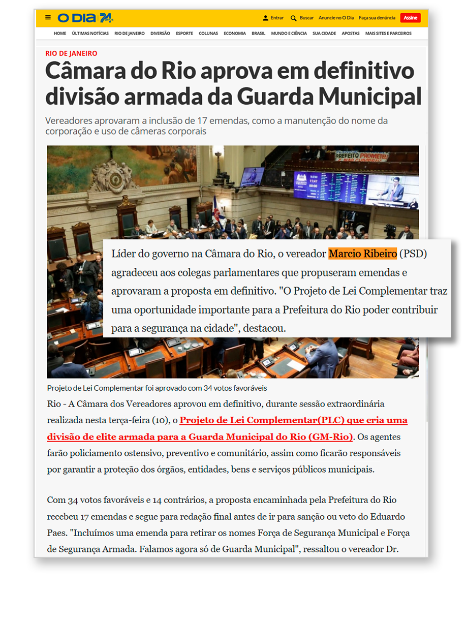 Câmara do Rio aprova em definitivo divisão armada da Guarda Municipal