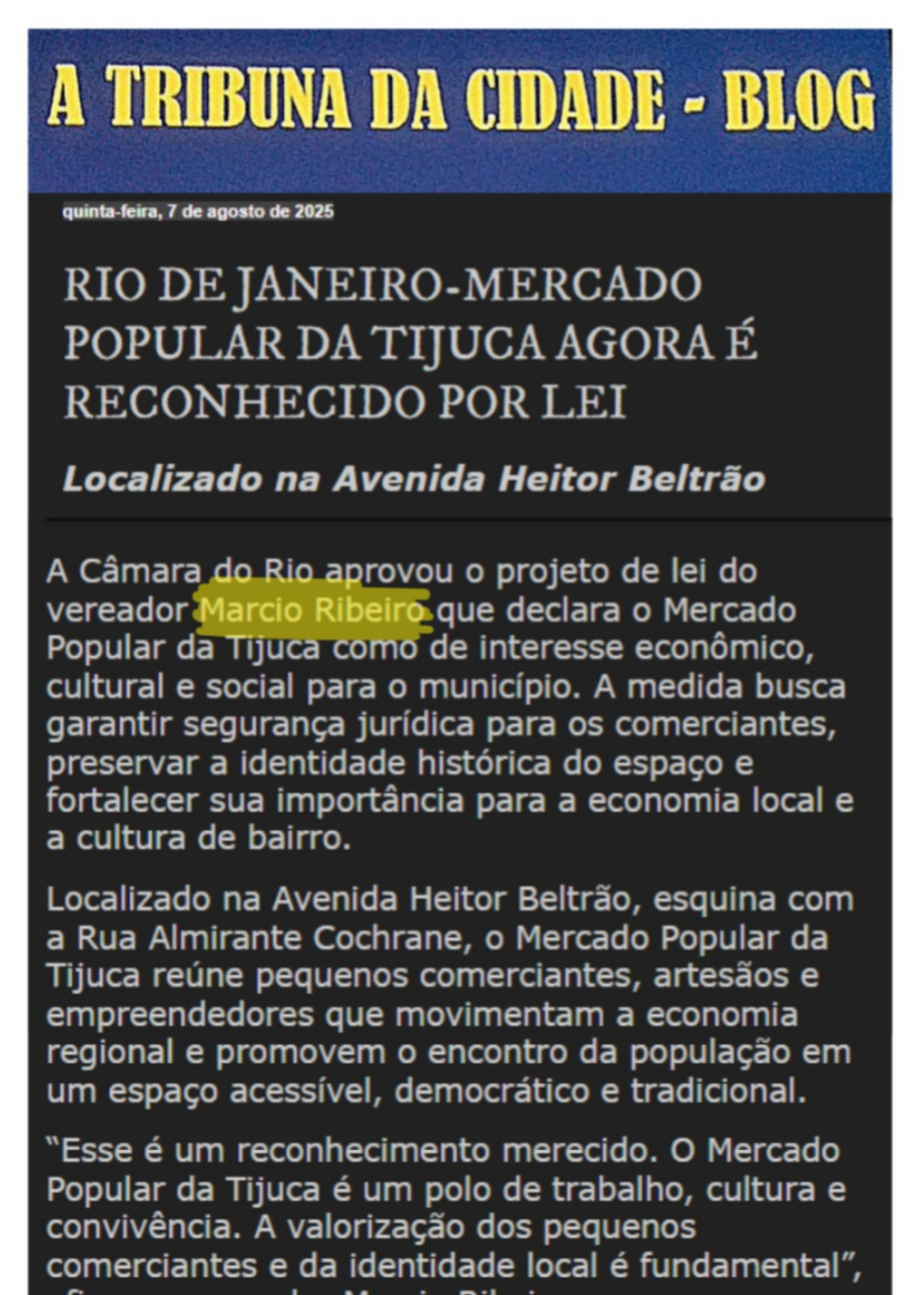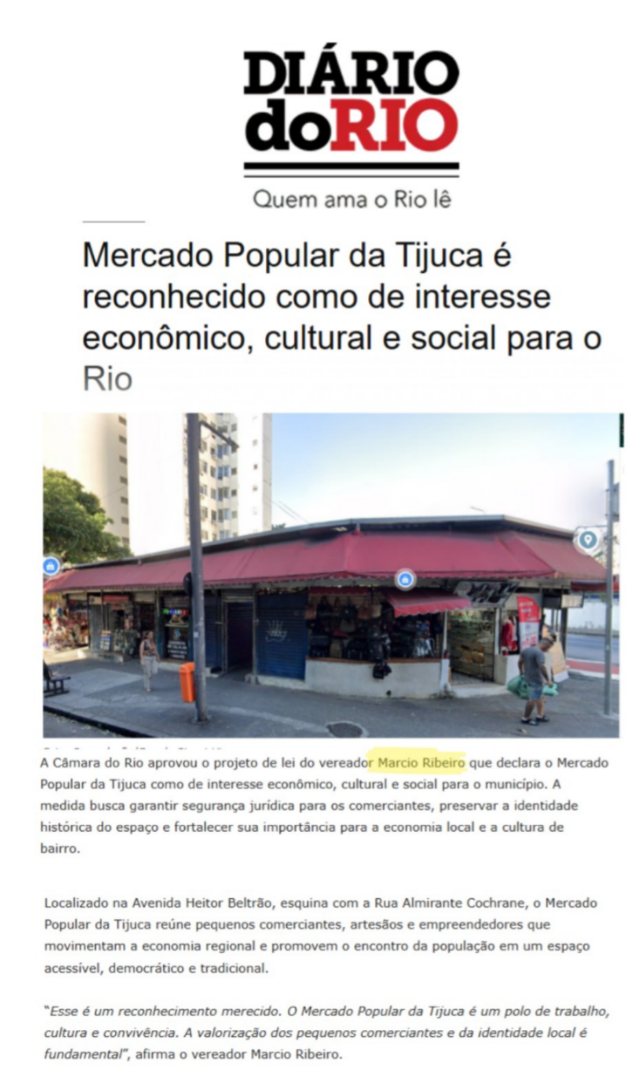 Mercado Popular da Tijuca é reconhecido como de interesse econômico, cultural e social para o Rio