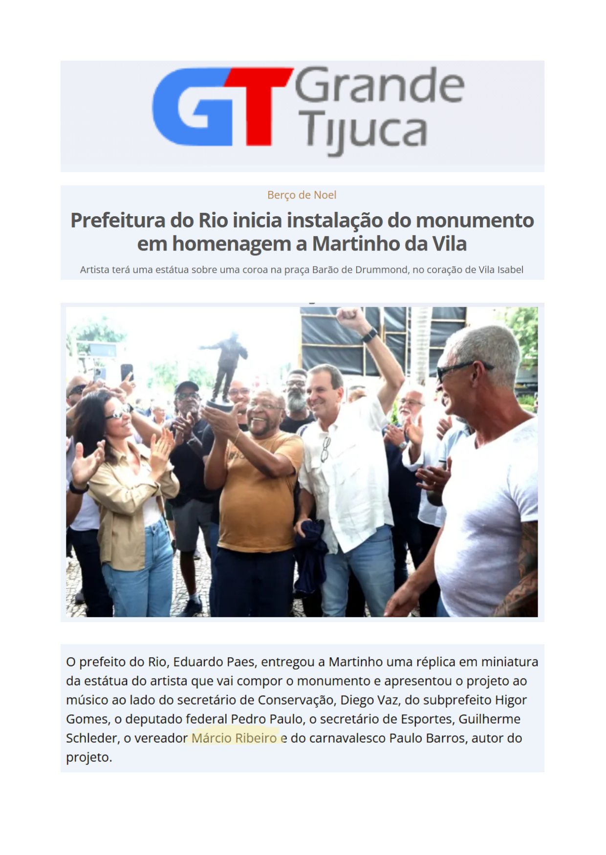 Prefeitura inicia instalação do monumento em homenagem a Martinho da Vila